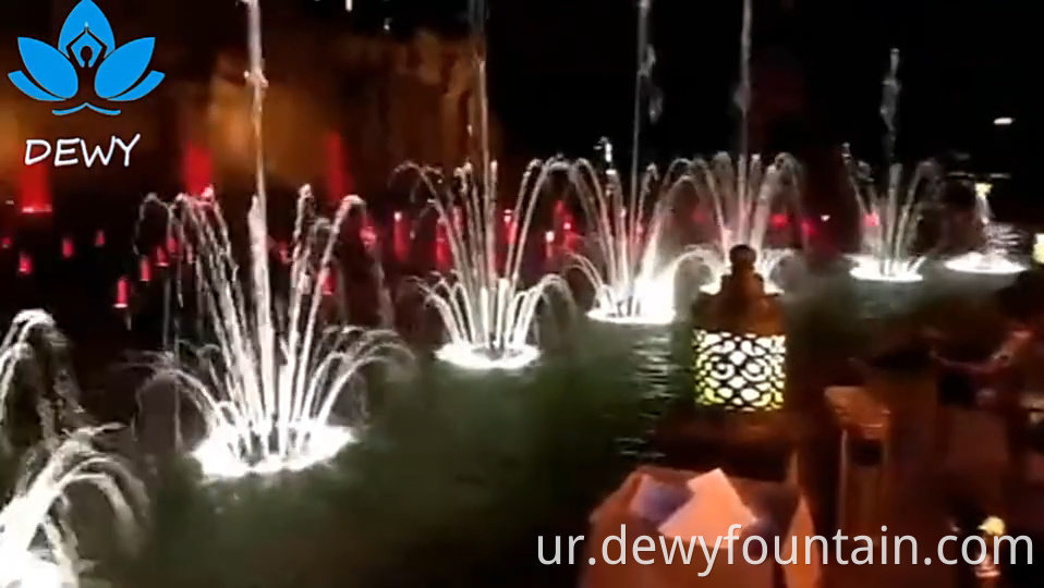 واٹر ڈانسنگ فاؤنٹین میں پانی کے متعدد جیٹ طیارے شامل ہیں جو مختلف نمونوں اور اونچائیوں میں ہوا میں گولی مار دیتے ہیں۔ پانی کے یہ جیٹ طیارے رنگین ایل ای ڈی لائٹس سے روشن ہیں ، جس سے ایک حیرت انگیز بصری اثر پیدا ہوتا ہے۔ پانی کے جیٹ طیاروں کو موسیقی کے ساتھ وقت پر منتقل کرنے کے لئے ہم آہنگ کیا جاسکتا ہے ، جس سے متحرک اور دلکش ڈسپلے پیدا ہوتا ہے۔